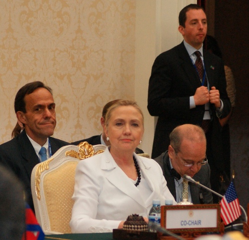 U.S. Secretary of State Hillary Rodham Clinton has had a closed door meeting with her Chinese counterpart Yang Jiechi today and she is expected to hold a press conference in late afternoon (6 pm, Cambodian time). Hillary has also joined the 2ndEast Asia Foreign Ministers’ Meeting (EAS FMM) in the morning.
